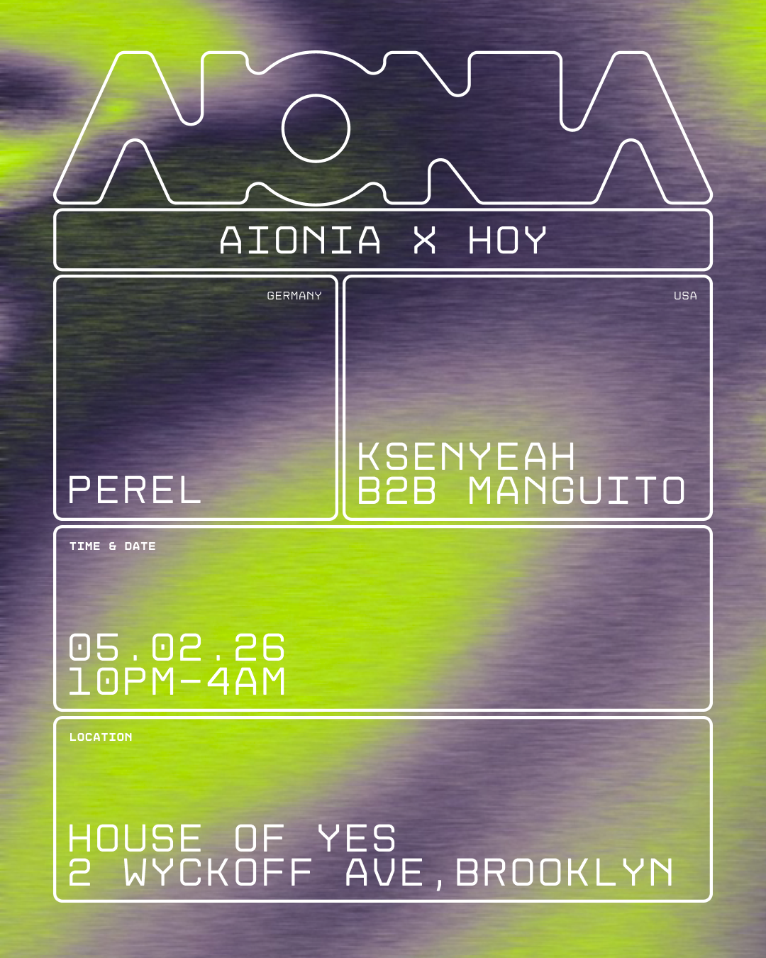 AIONIA X HOUSE OF YES W/ PEREL [DFA | BERLIN] | KSENYEAH B2B MANGUITO [BROOKLYN]
