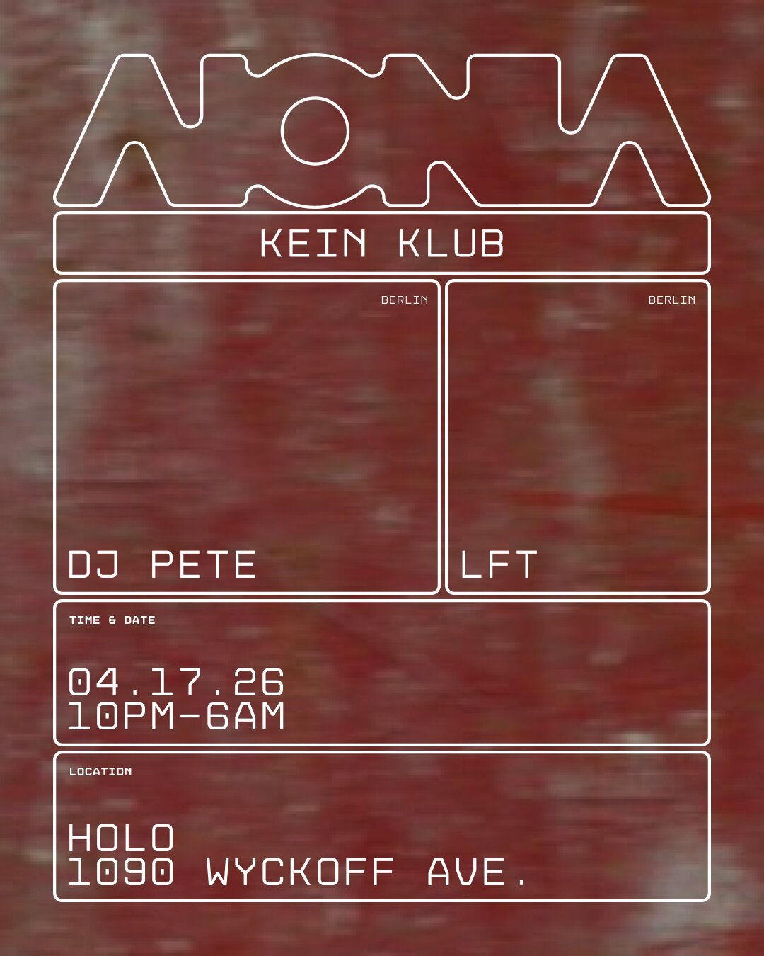 KEIN KLUB TAKES OVER H0L0. NO FRILLS, NO RULES, JUST PURE UNDERGROUND ENERGY. EXPECT DEEP, DRIVING SOUNDS STRAIGHT FROM BERLIN’S UNDERBELLY.