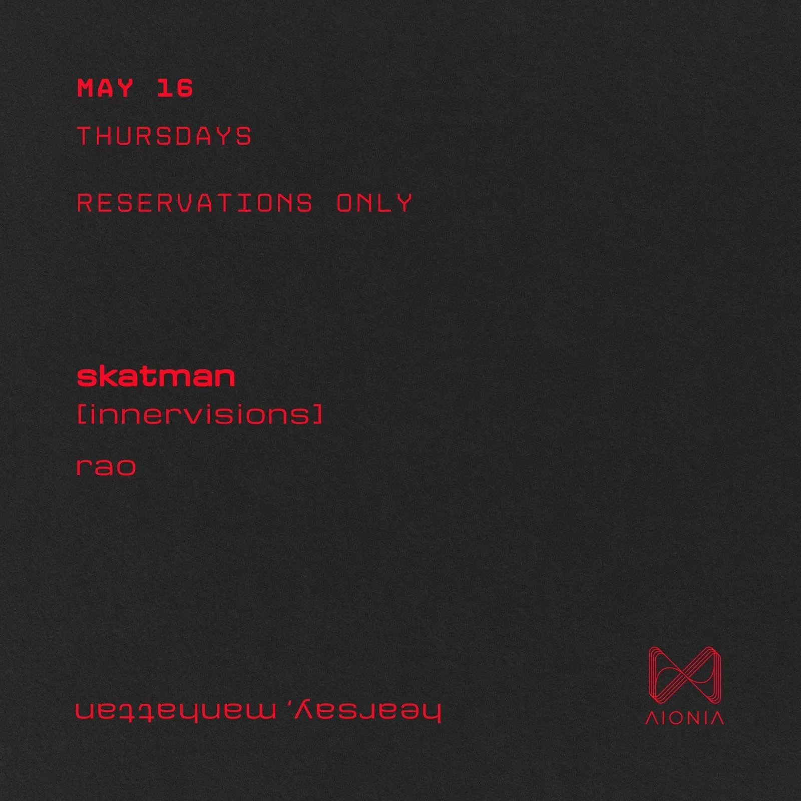 The Aionia residency @ Herasay continues on May 16 with Skatman & Rao.